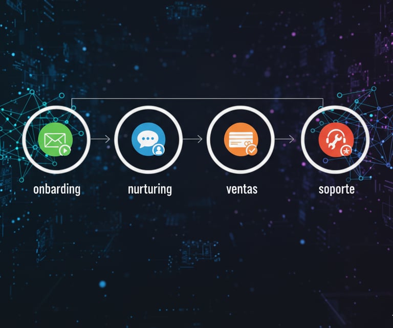 Procesos automatizados para captación, nurturing, ventas, cobros, soporte y reporting. Menos tareas manuales, más crecimiento.